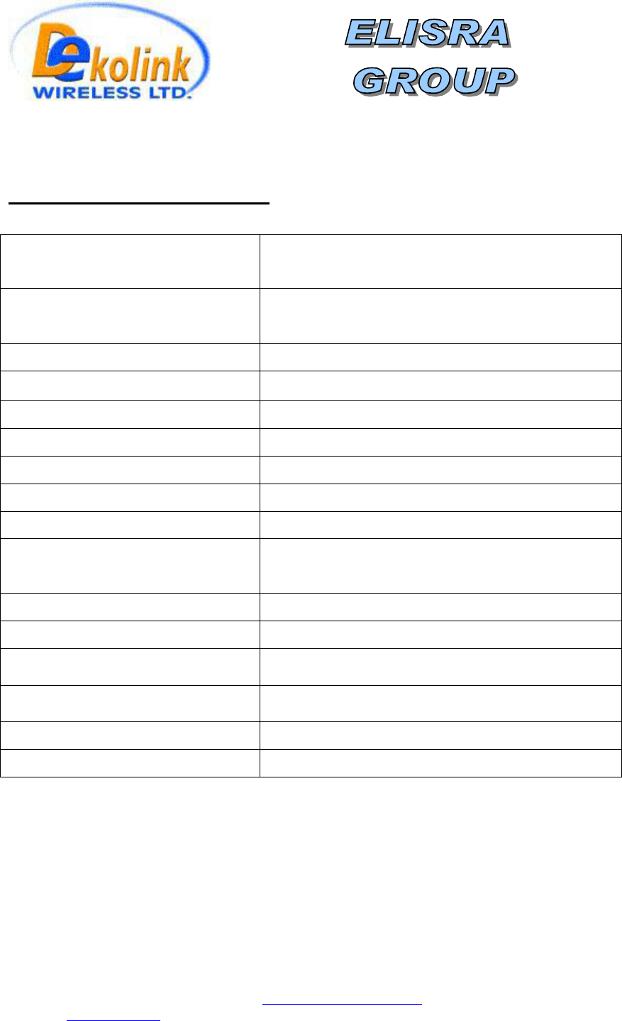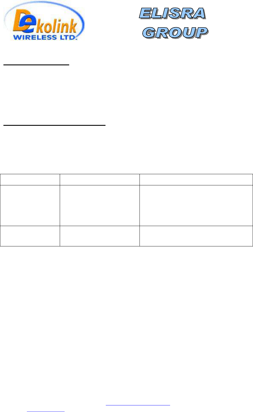 ekolink Wireless Ltd.;16 Bazel St.Qiryat-Arieh Petah-Tikva Israel, 49510