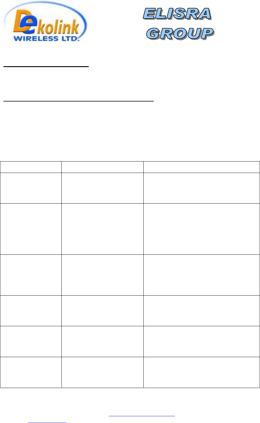 Dekolink Wireless Ltd.;16 Bazel St.Qiryat-Arieh Petah-Tikva Israel, 49510
