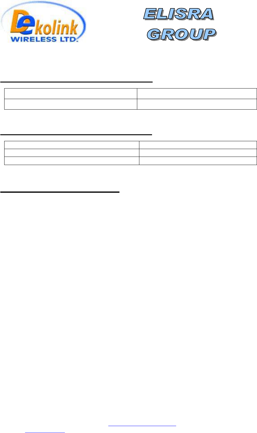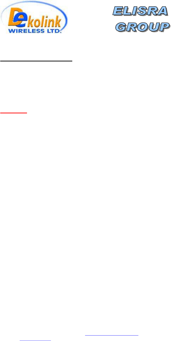 Dekolink Wireless Ltd.;16 Bazel St.Qiryat-Arieh Petah-Tikva Israel, 49510