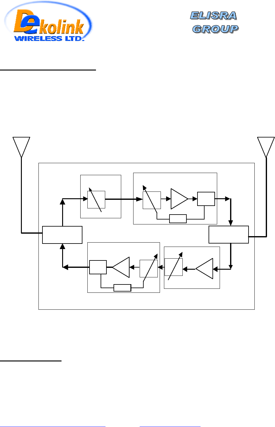 The Downlink path receives the RF signals from base station, amplifies them and transmits them for