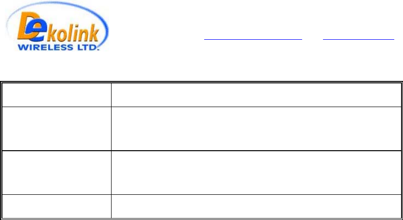 Dekolink Wireless Proprietary and Confidential Information. Copying, Distribution, and Disclosu