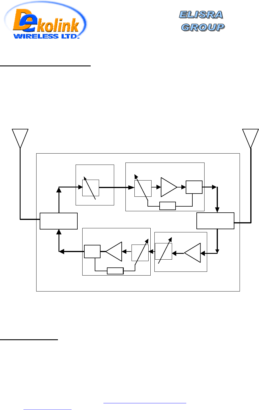 The Downlink path receives the RF signals from base station, amplifies them and transmits them for