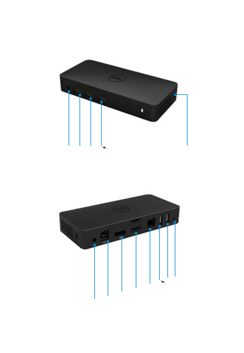 • 2 High-powered ports ( ) for battery charging (BC 1.2).