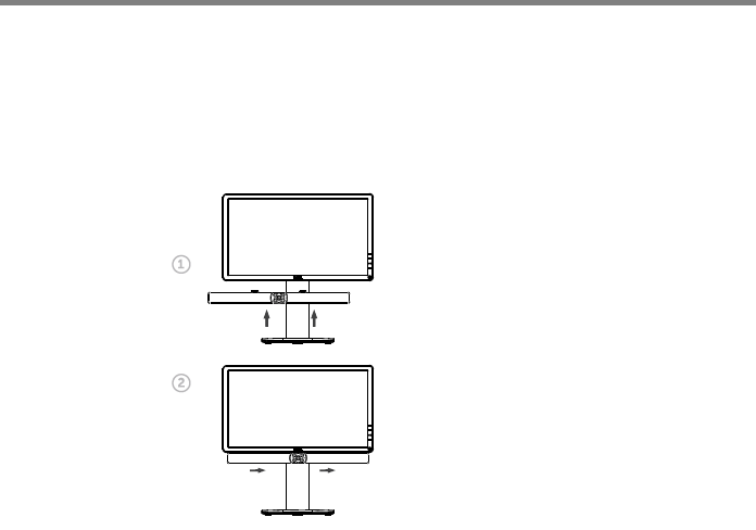 2 Slide the sound bar to the right to engage the hook into the monitor slot.