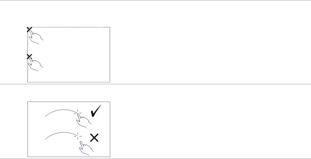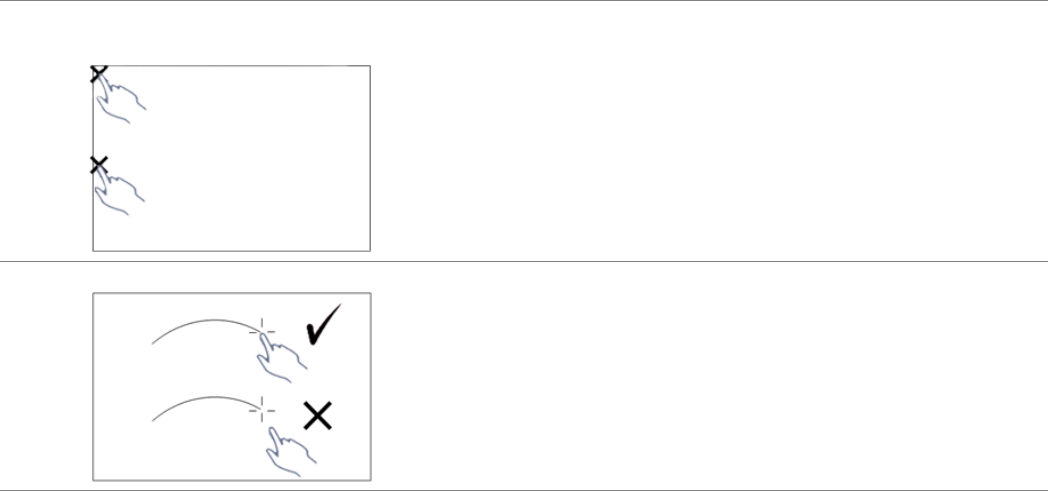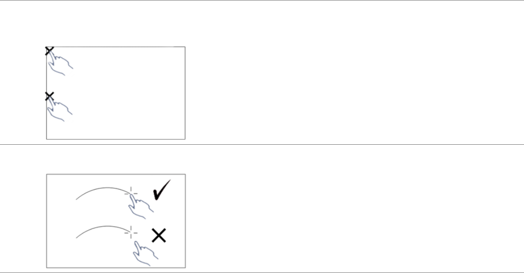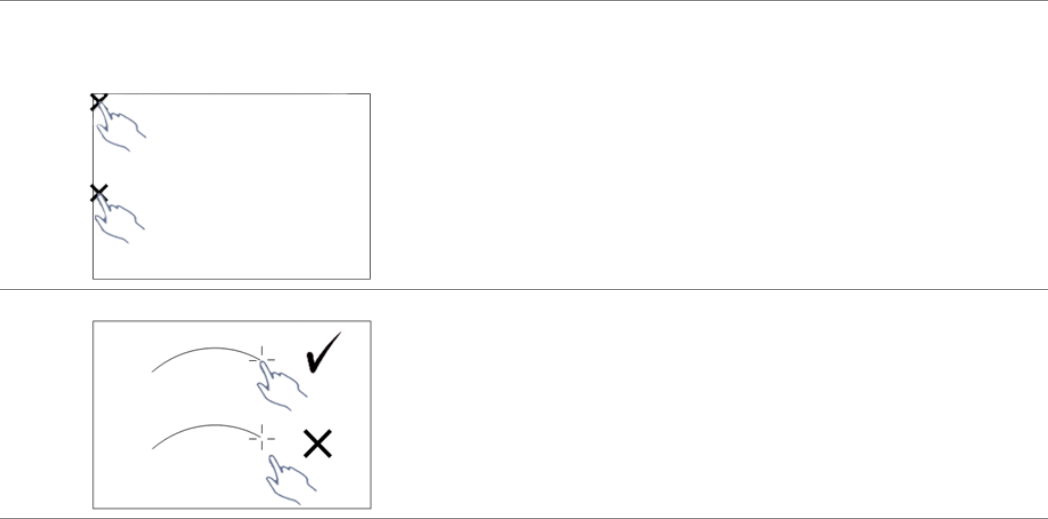 การสัมผัสที่ขอบหรือมุมภาพใชงานไมไดโปรดดูที่สวน F เพื่อดําเนินการปรับการสัมผัสหร ือพื้นที่