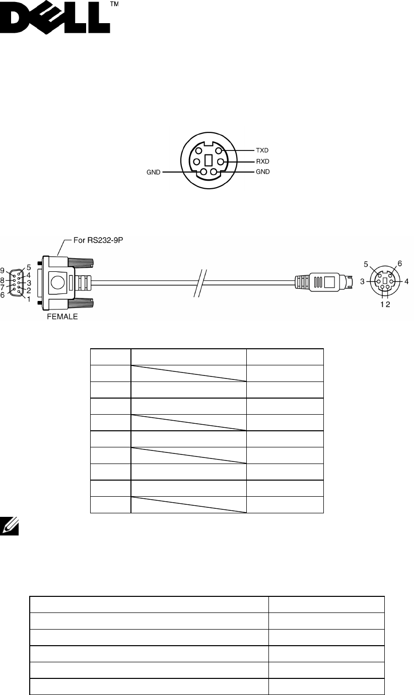 Note 1: The RS232 cable is not provided by Dell.
