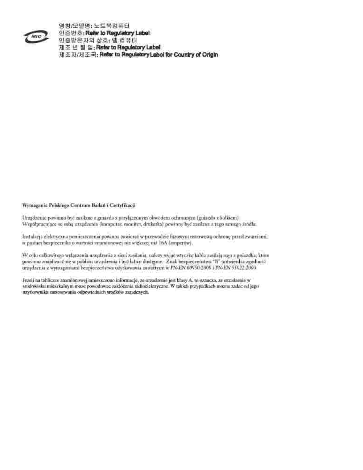 device. The MIC label may be located separately from the other regulatory marking applied to your product.