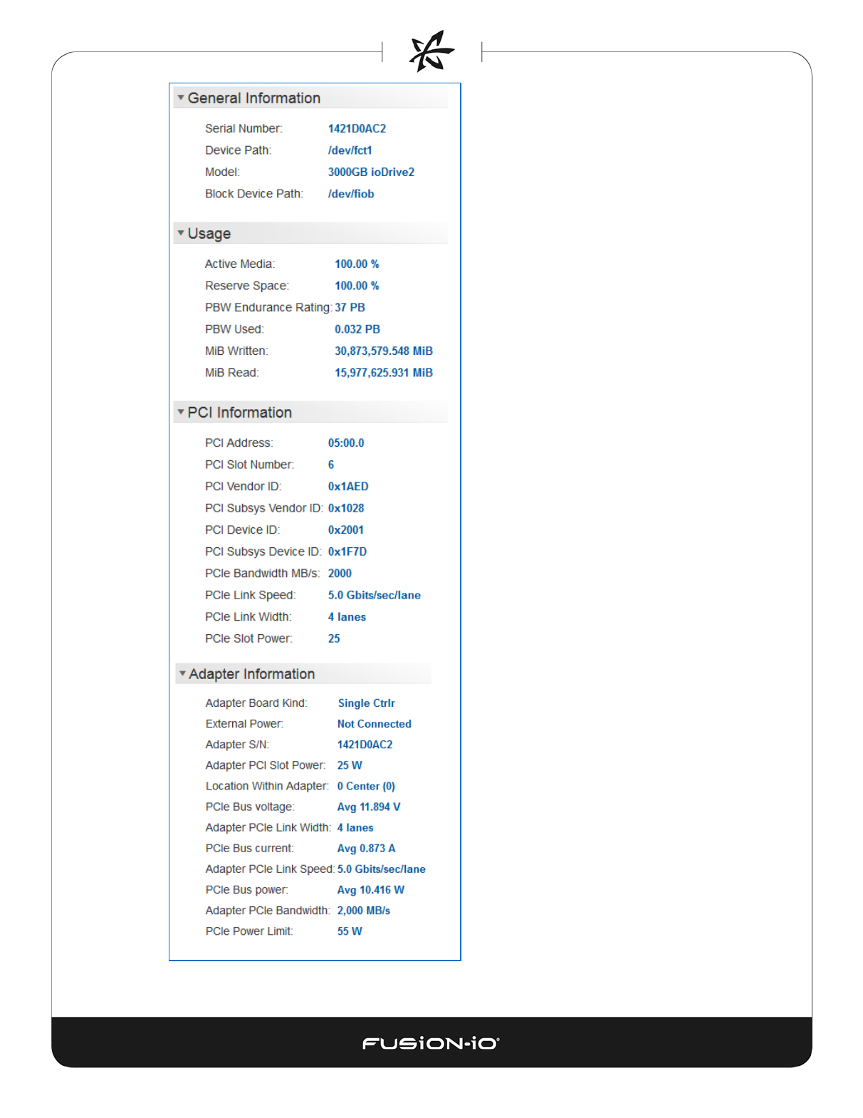 ioDrive index – correlates to the drive
