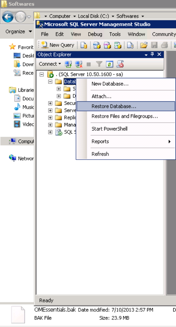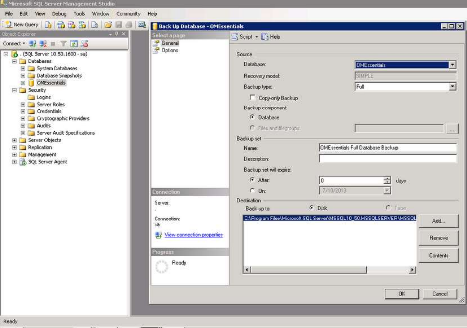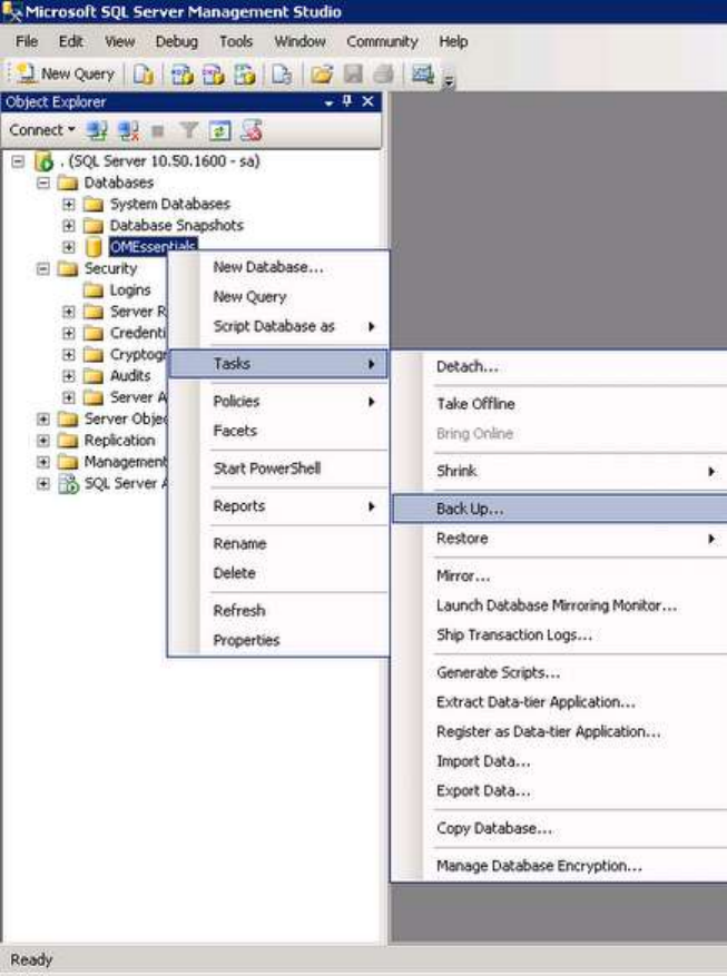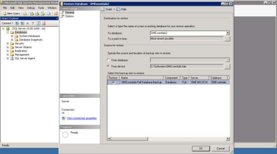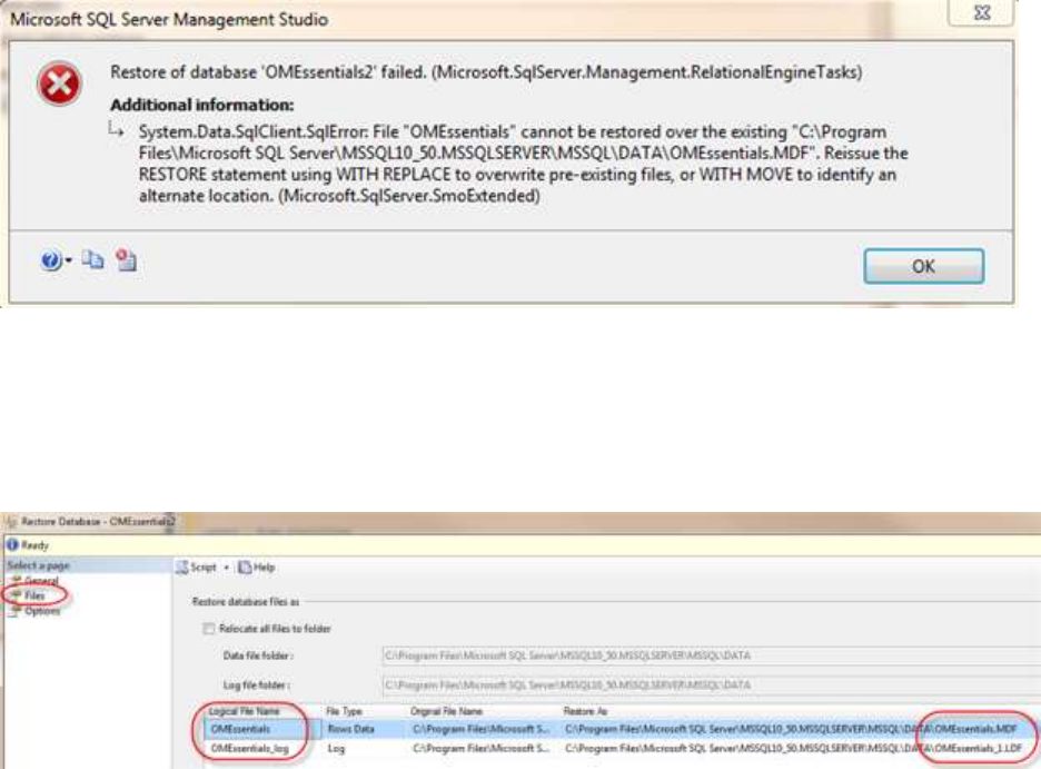 database (i.e. OMEssentials2), so that it can point to the restored database.