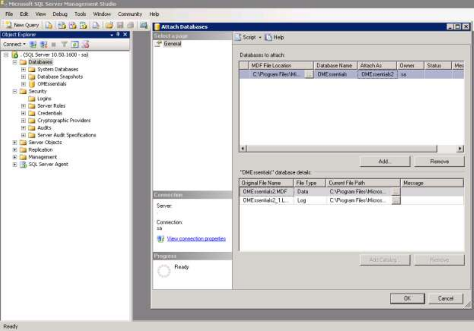 Attaching the OpenManage Essentials Database Using MDF/LDF Files Figure 7.
