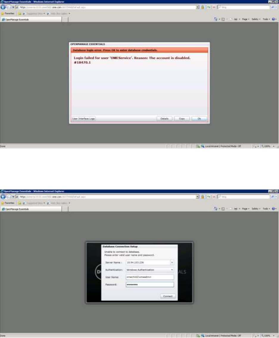 6. Once the connection between database and OpenManage Essentials is lost in the second