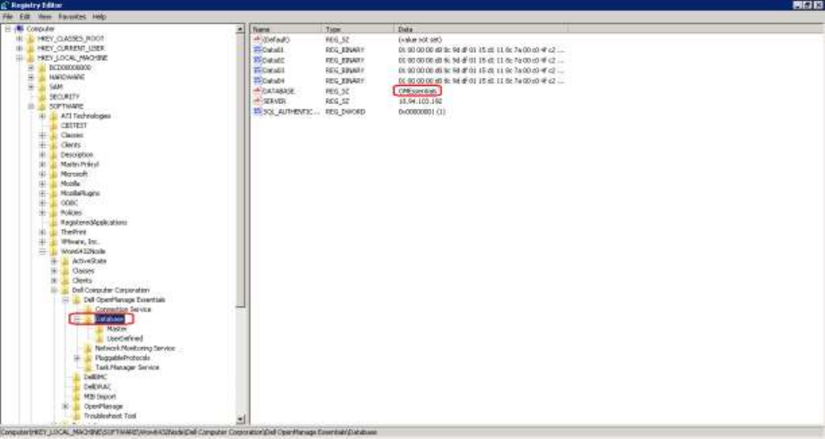 the database of the first OpenManage Essentials instance. Launch the registry editor in the