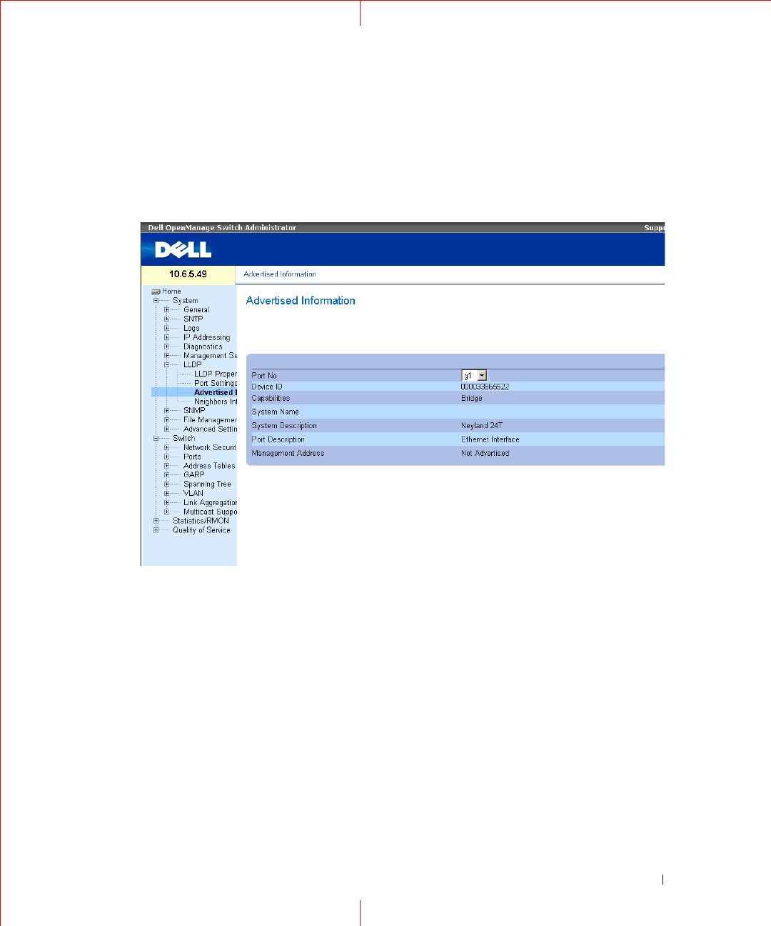 port ID advertisement, as well as system name, system ID, system description, and system capability