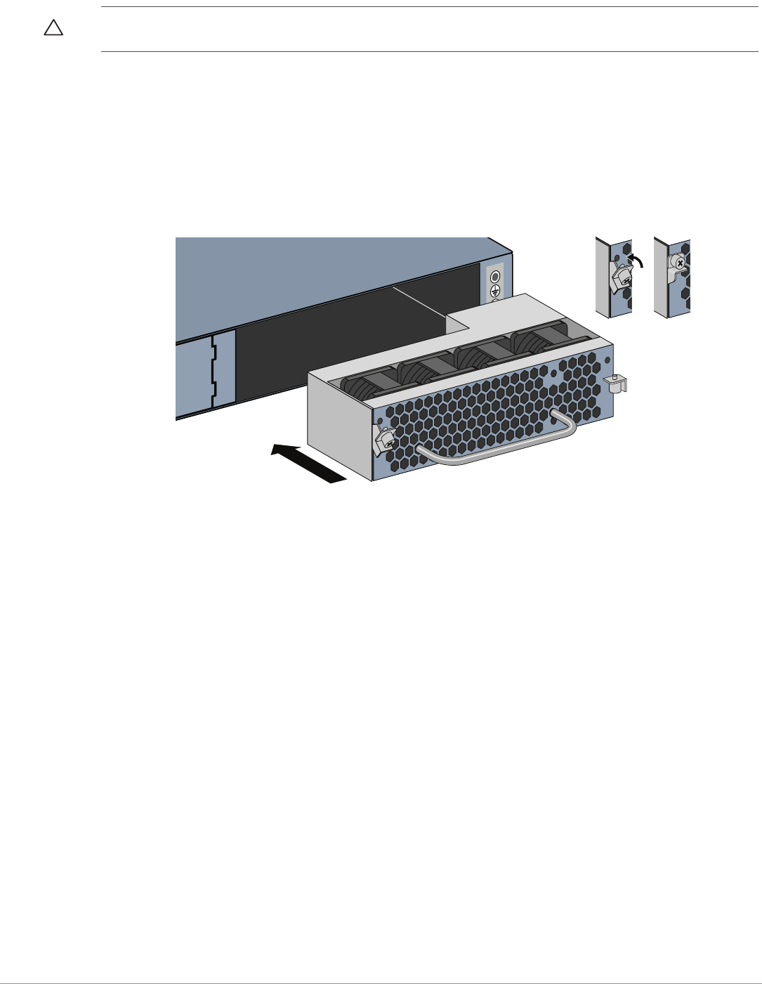 the hinges are disengaged. Use the fan tray handle to pull the fan out.