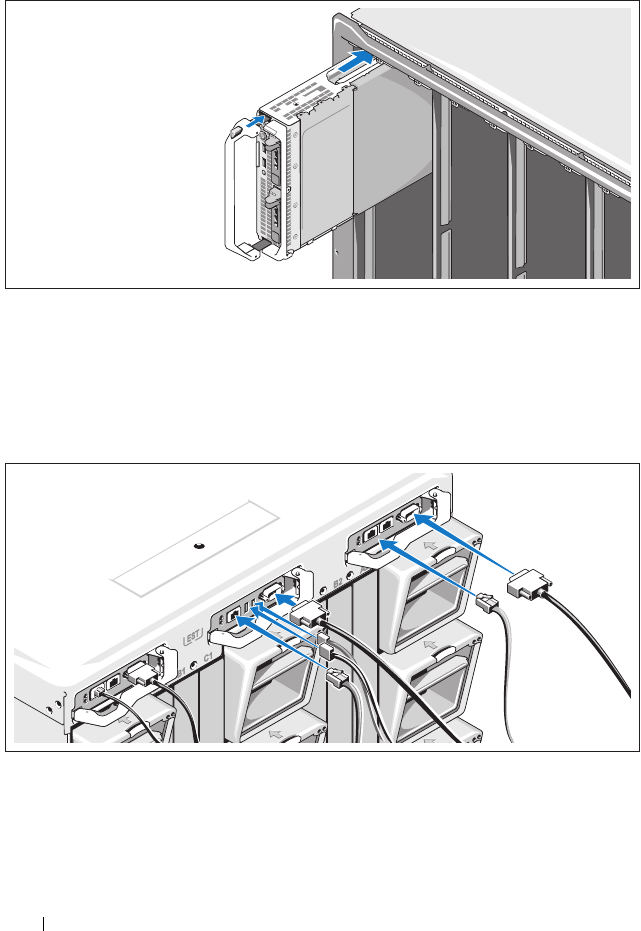 Beginning at the top, slide the modules into the enclosure from left to right.