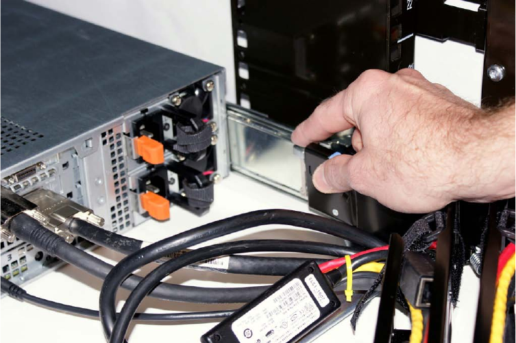 6. Extend the system out of the rack to verify that there is sufficient slack in the cables on both ends of