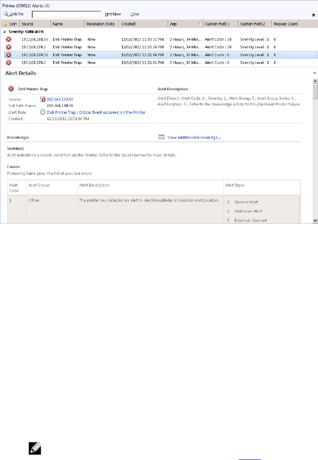 Display alerts from Dell printer Displays the Simple Network Management Protocol