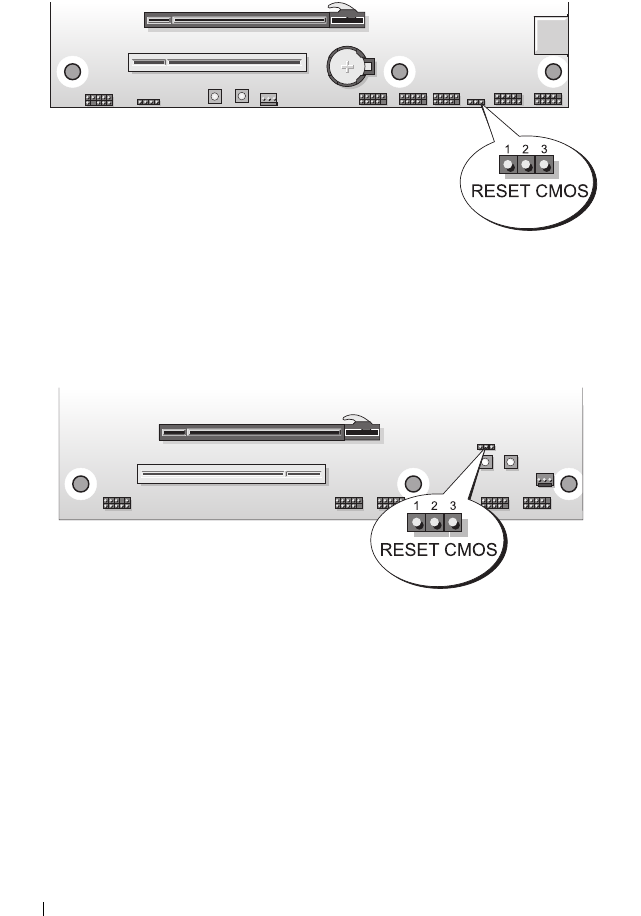 Locate the Reset CMOS jumpers on the system board (see "System Board