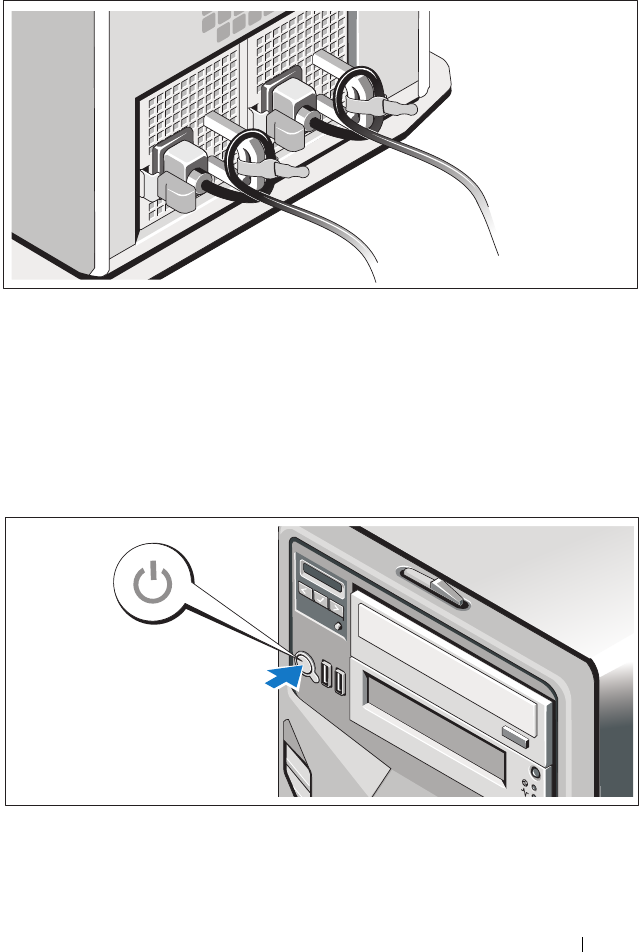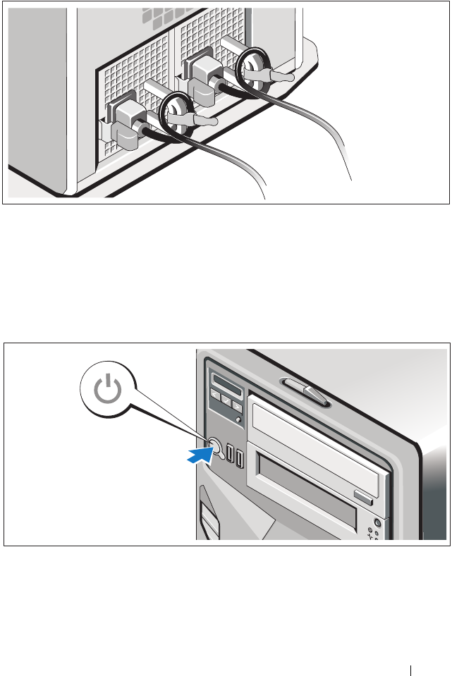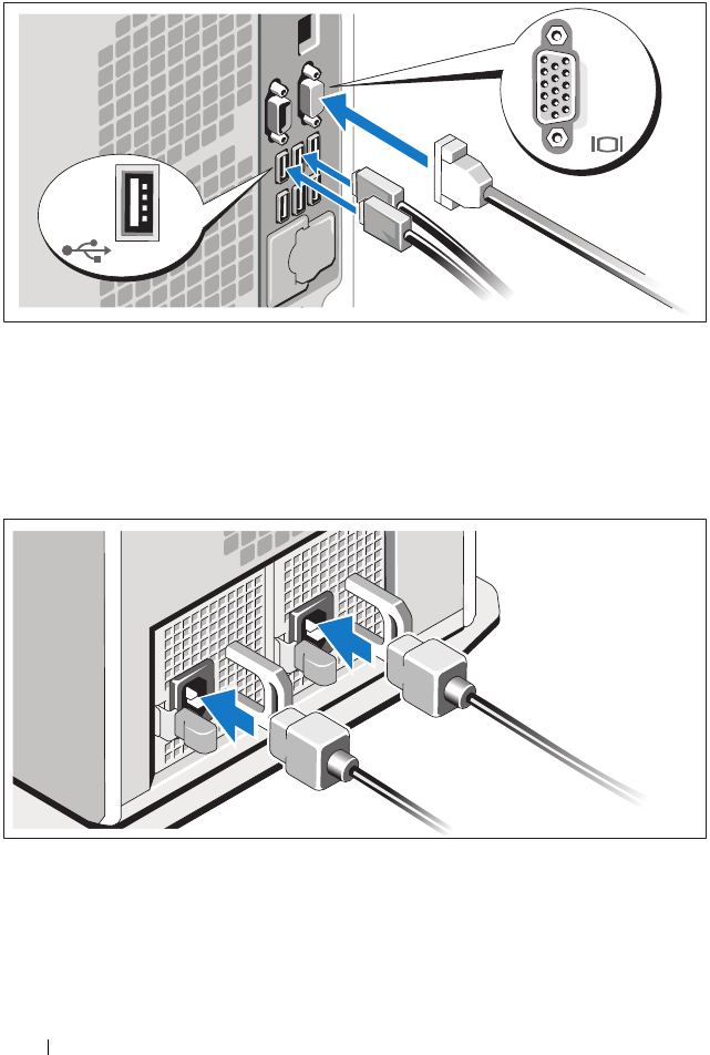 Connect the system’s power cable(s) to the system and, if a monitor is used,