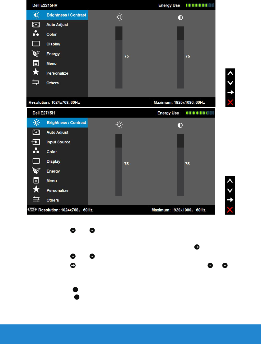 or 1920 x 1080 (for E2215HV/E2715H) pixels by performing the following