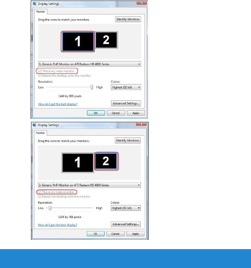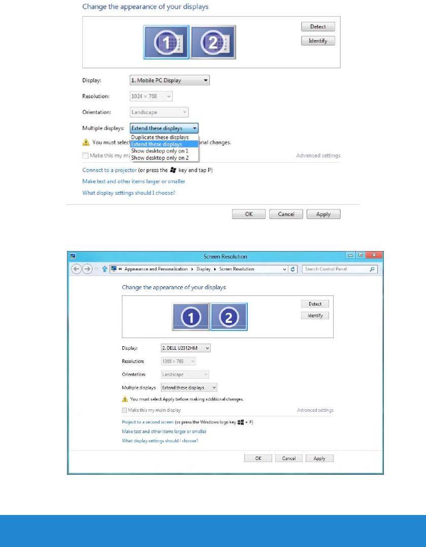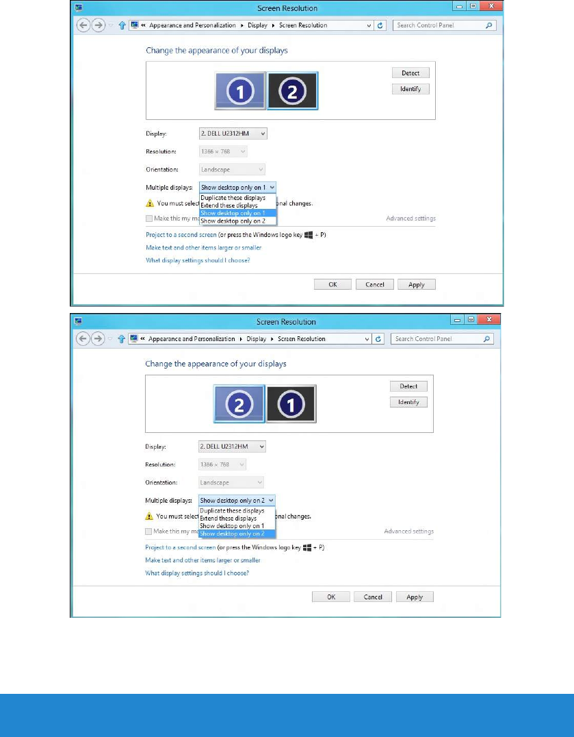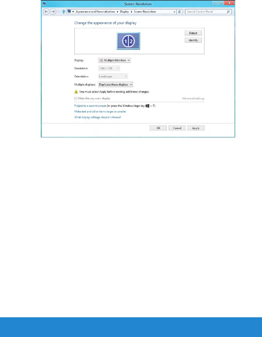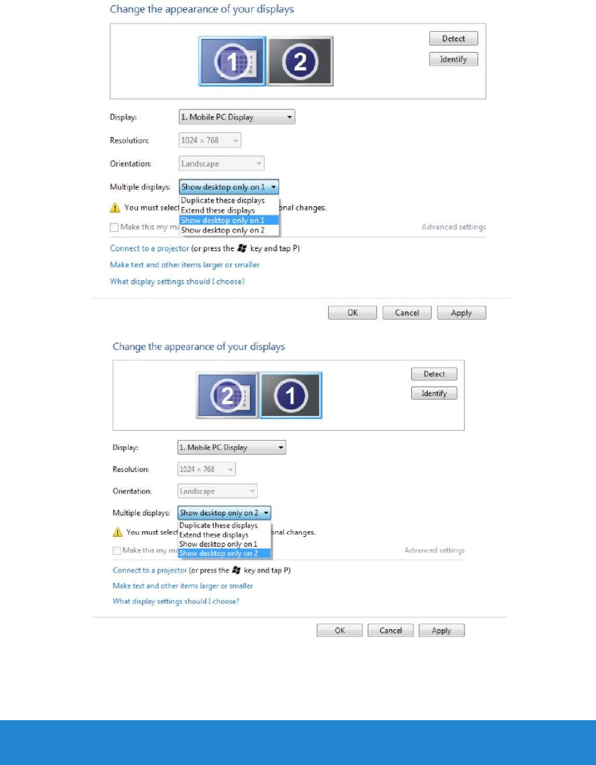 • Duplicate these displays: Duplicate the same screen on two monitors