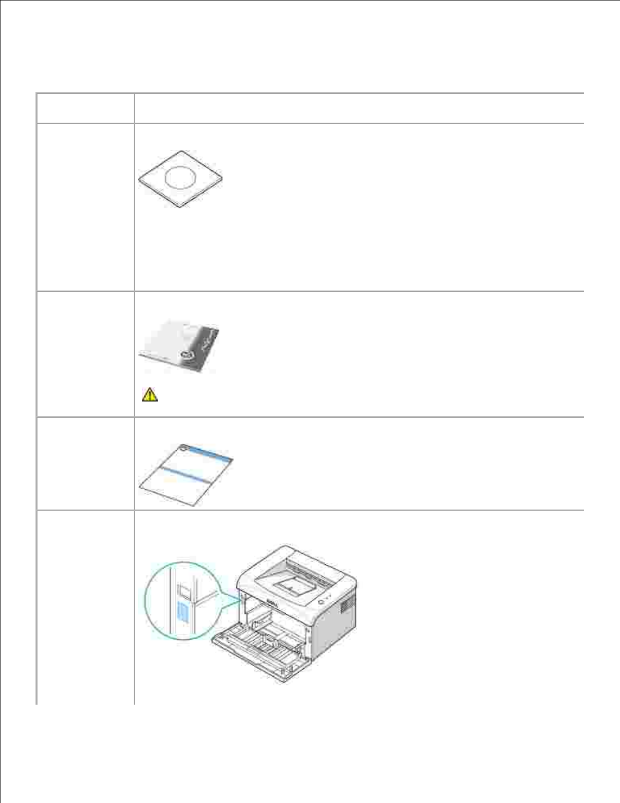 In addition to the Dell Laser Printer 1100, ensure that you have the following items in the box. If