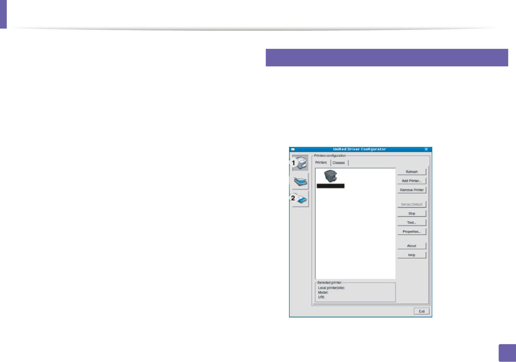 - Utilisation du programme Unified Driver Configurator de Linux
