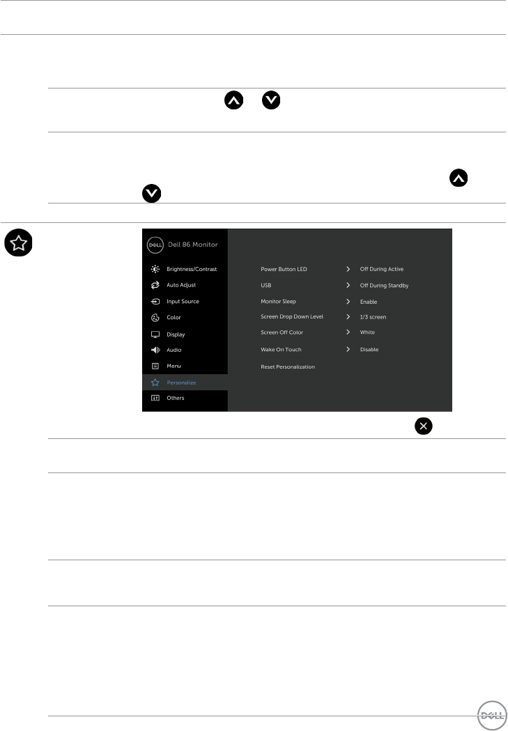 • 전면 패널의 아이콘 5를 4초 동안 길게 터치하여