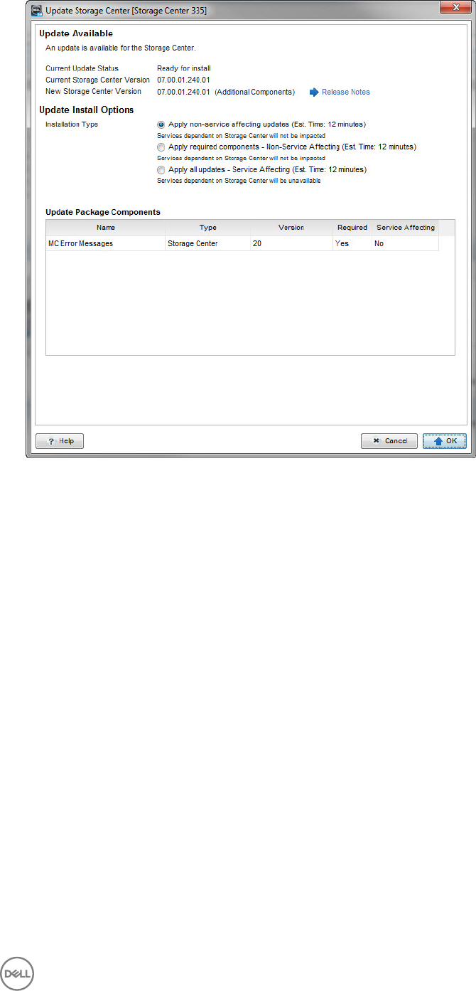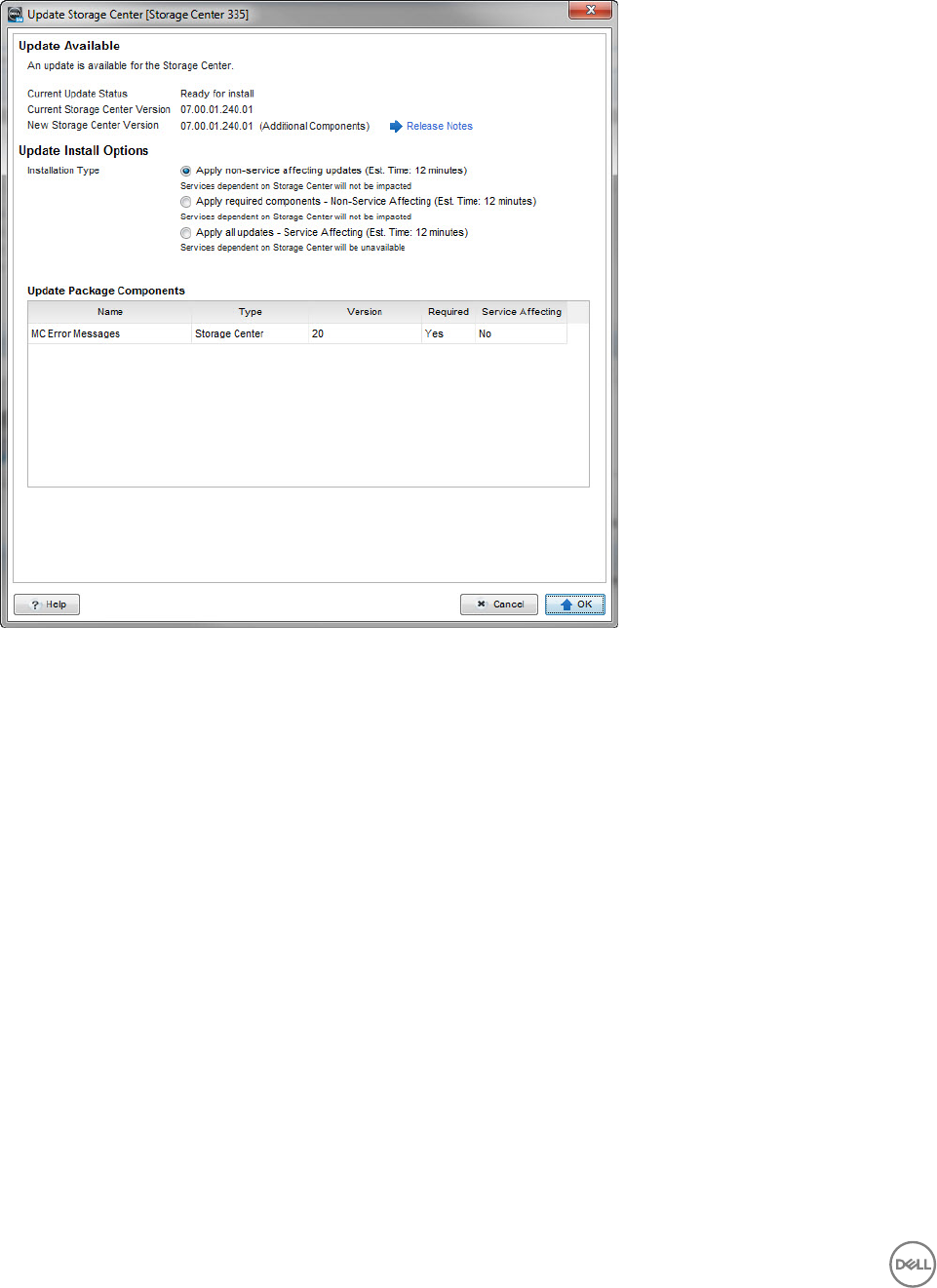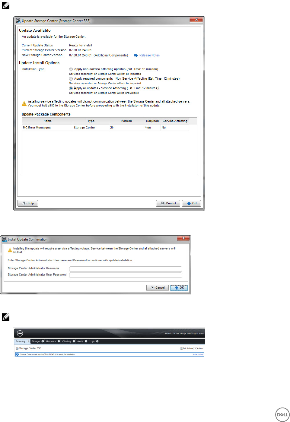 2. Click OK. If the updates are service aecting, provide a Storage Center administrative user name and password.