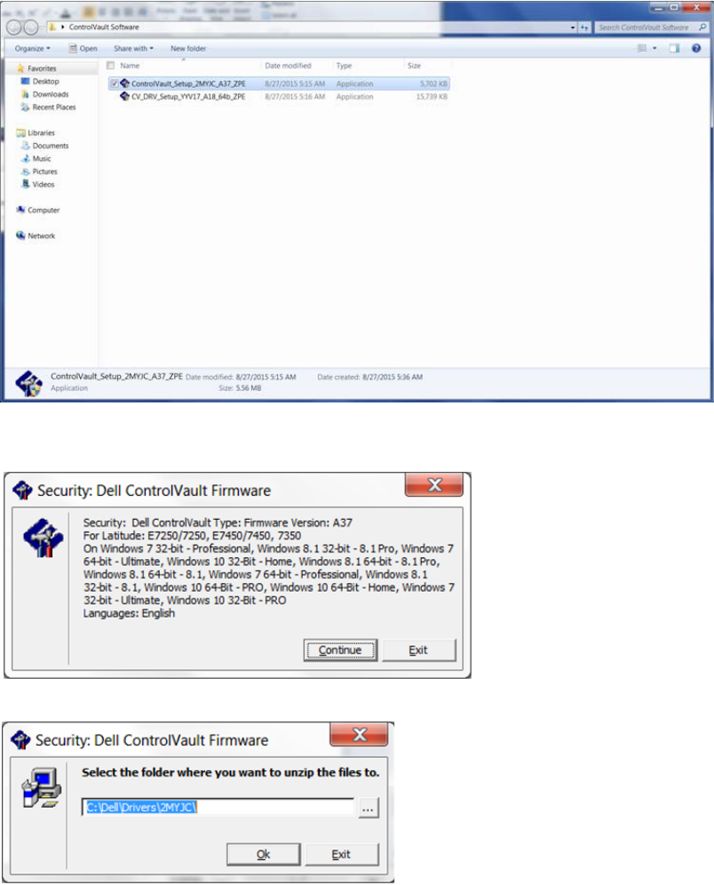 Double-click the Dell ControlVault firmware to launch the self-extracting executable file.