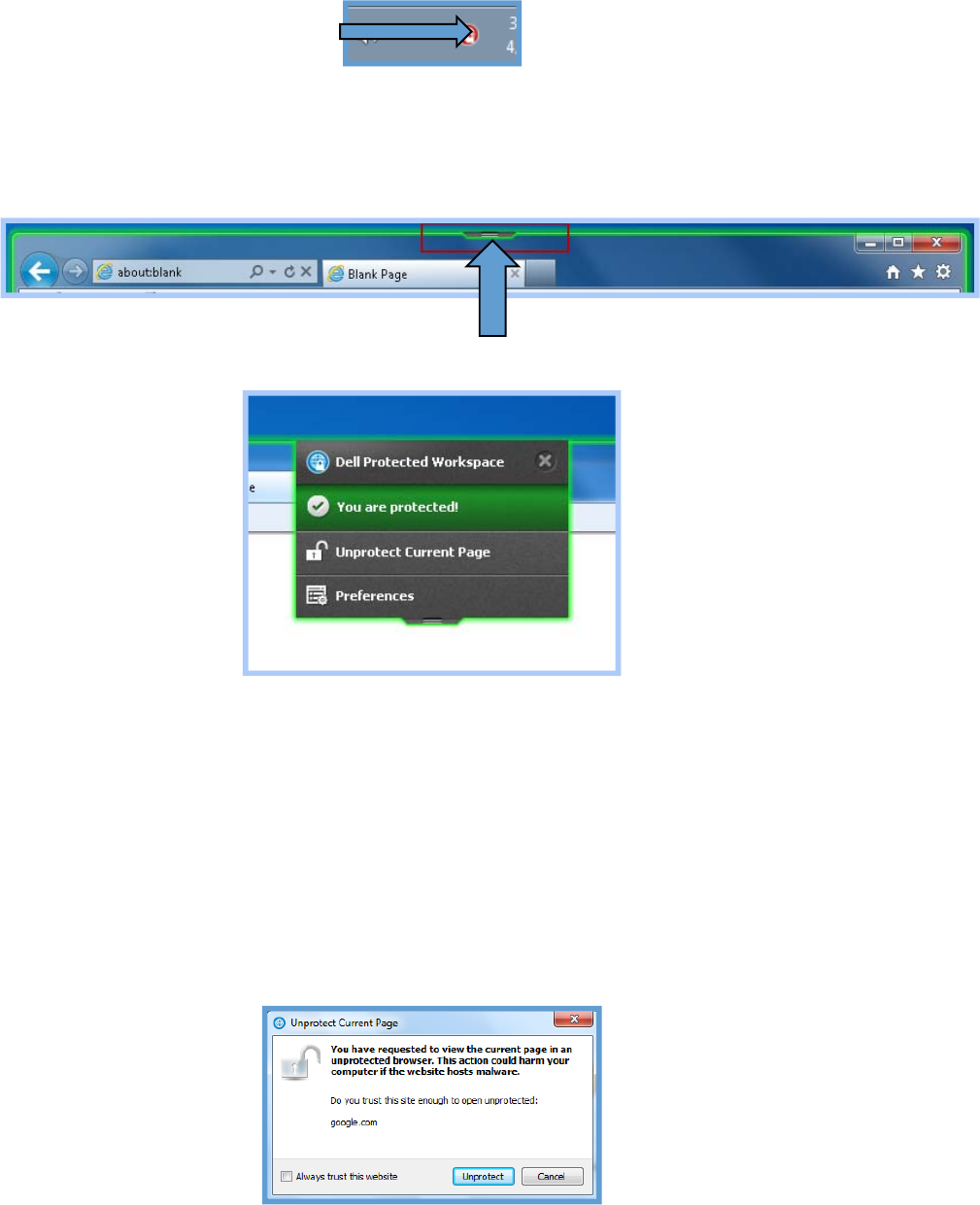 Starting the Dell Data Protection | Protected Workspace Environment or Launching new Browser Window ............... 6