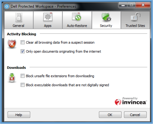 TheDownloadssectionoftheSecurityTabgivestheendusertheabilitytoconfigureadditionaloptions