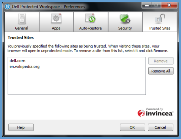 TheTrustedSitesTabprovidestheabilitytoremovepreviouslyspecifiedTrustedSites.