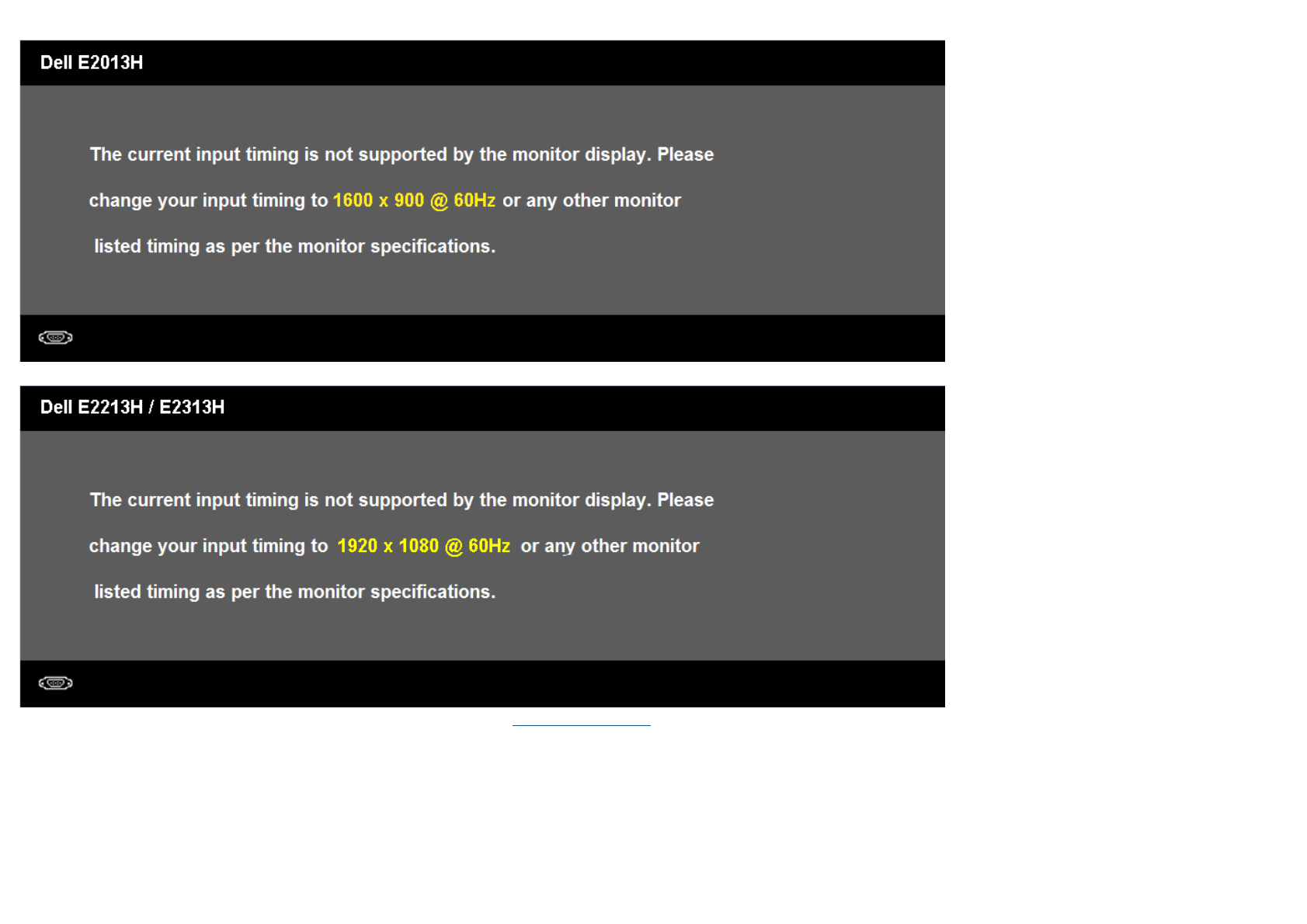 ถาคุณไมเห็น 1280 x 1024 (สําหรับ E1713S) หรือ 1600 x 900 (สําหรับ E2013H) หรือ 1920 x 1080 (สําหรับ E2213H/E2313H) เปนตัวเลือก คุณอาจจําเปนตองอัพเดตไดรเวอรกราฟฟกของคุณ โปรด