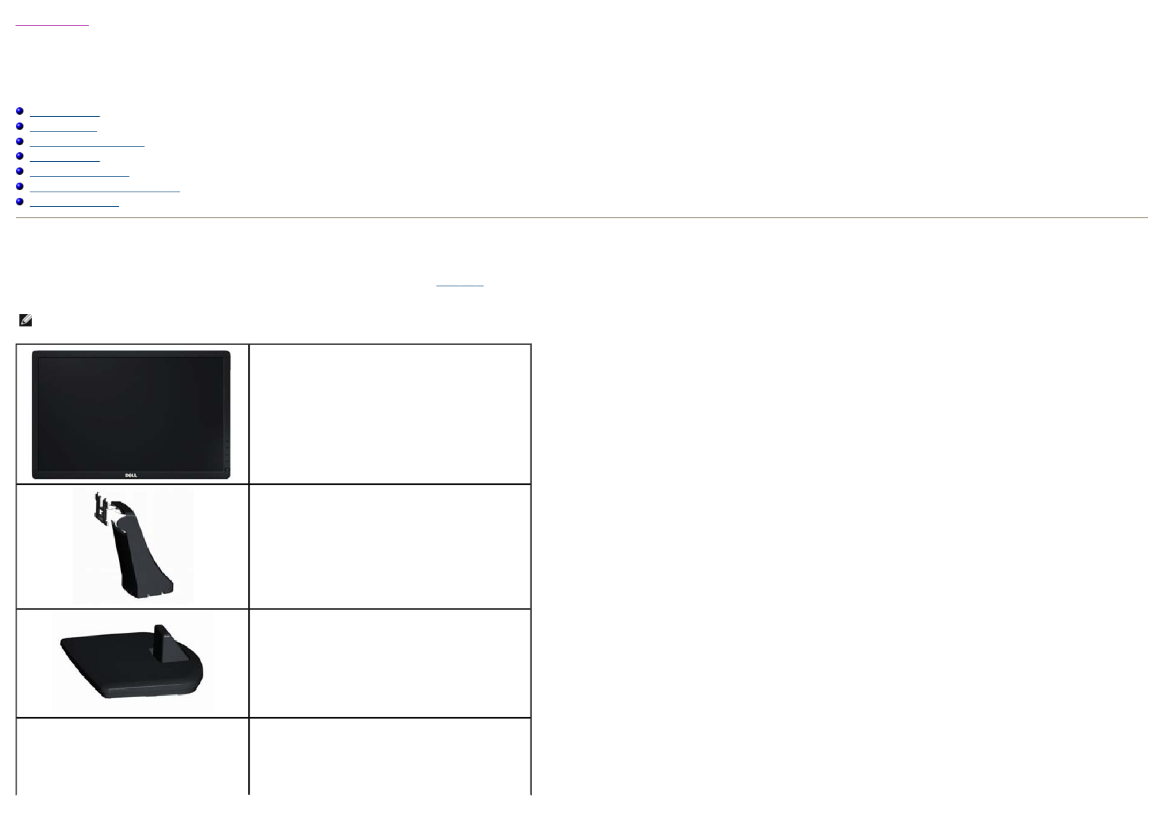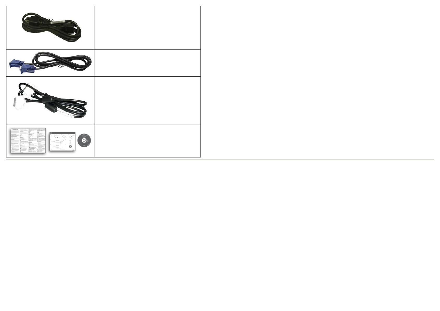 จอภาพของคุณสงมอบมาพรอมกับองคประกอบตางๆ ดังแสดงดานลาง ตรวจดูใหแนใจวาคุณไดรับชิ้นสวนทั้งหมดครบถวน และ ติดตอ Dell™ ถามีรายการใดๆ หายไป