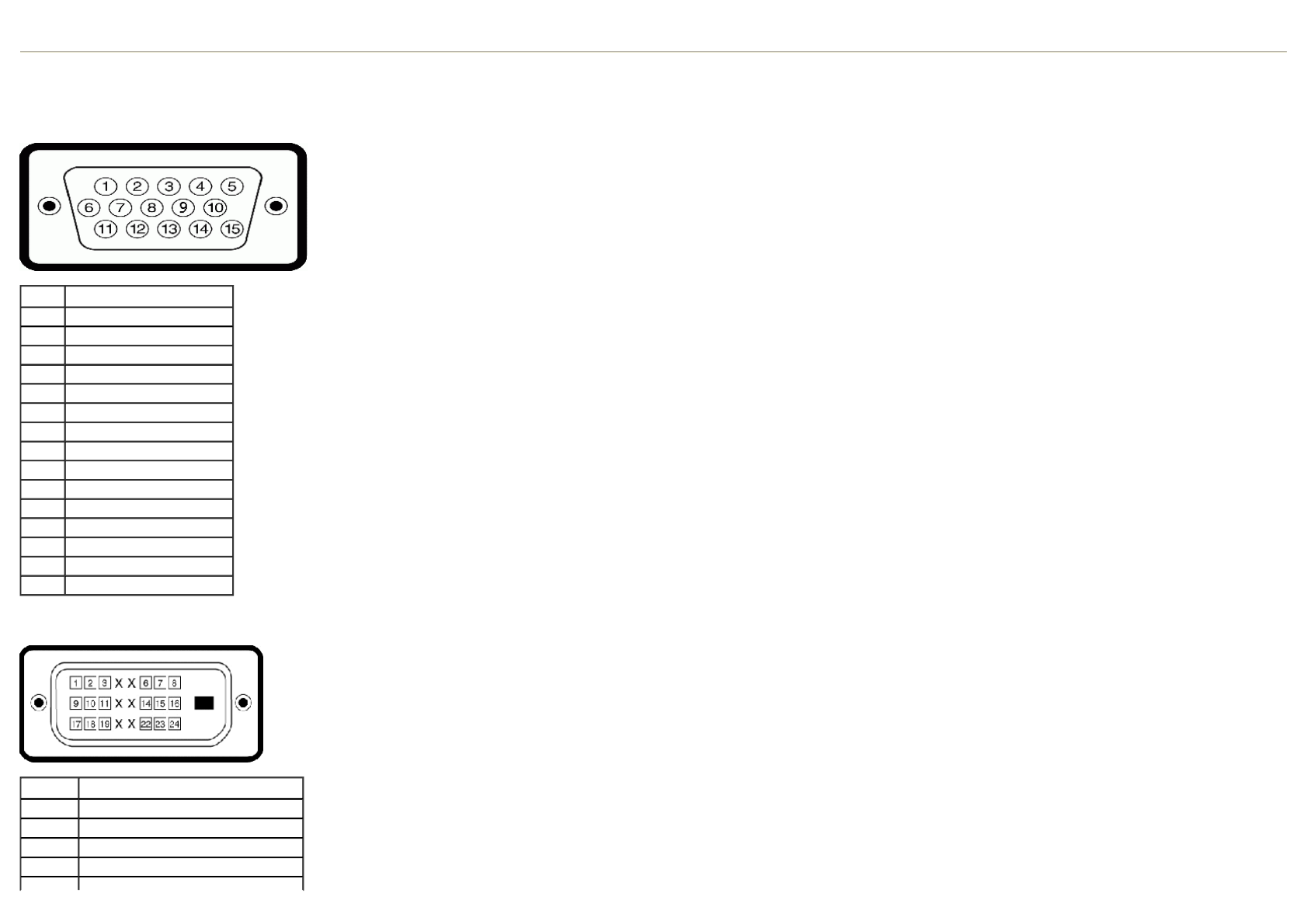 สวนตอไปนี้ ใหขอมูลเกี่ยวกับโหมดการจัดการพลังงานแบบตางๆ และการกําหนดพินสําหรับขั้วตอแบบตางๆ ของจอภาพของคุณ