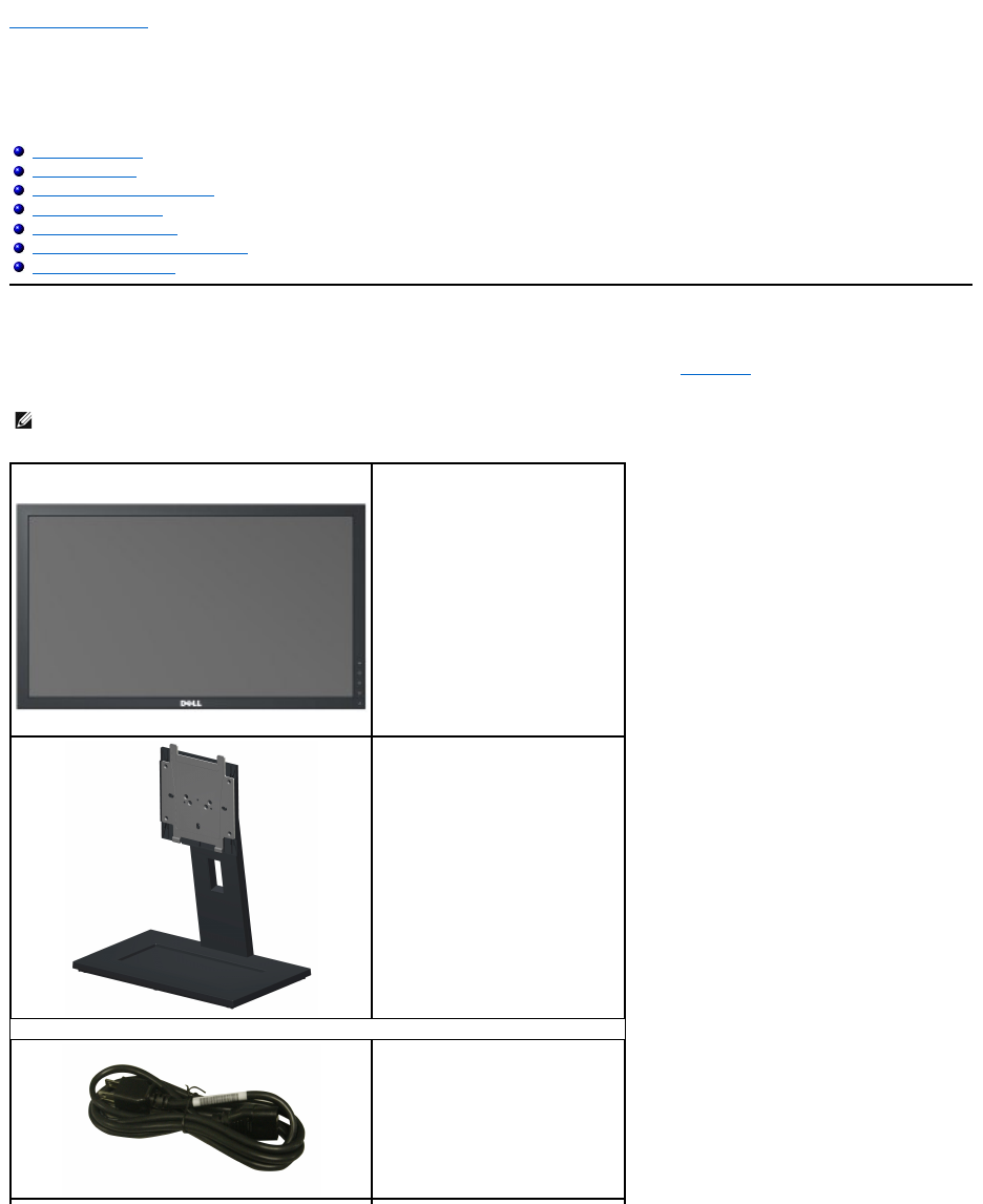 Your monitor ships with the components shown below. Ensure that you have received all the components and contact Dell if something is missing.