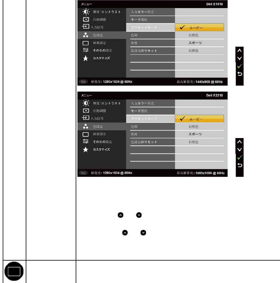 機能ボタン (詳細については「モニターの調整」をご参照くださ