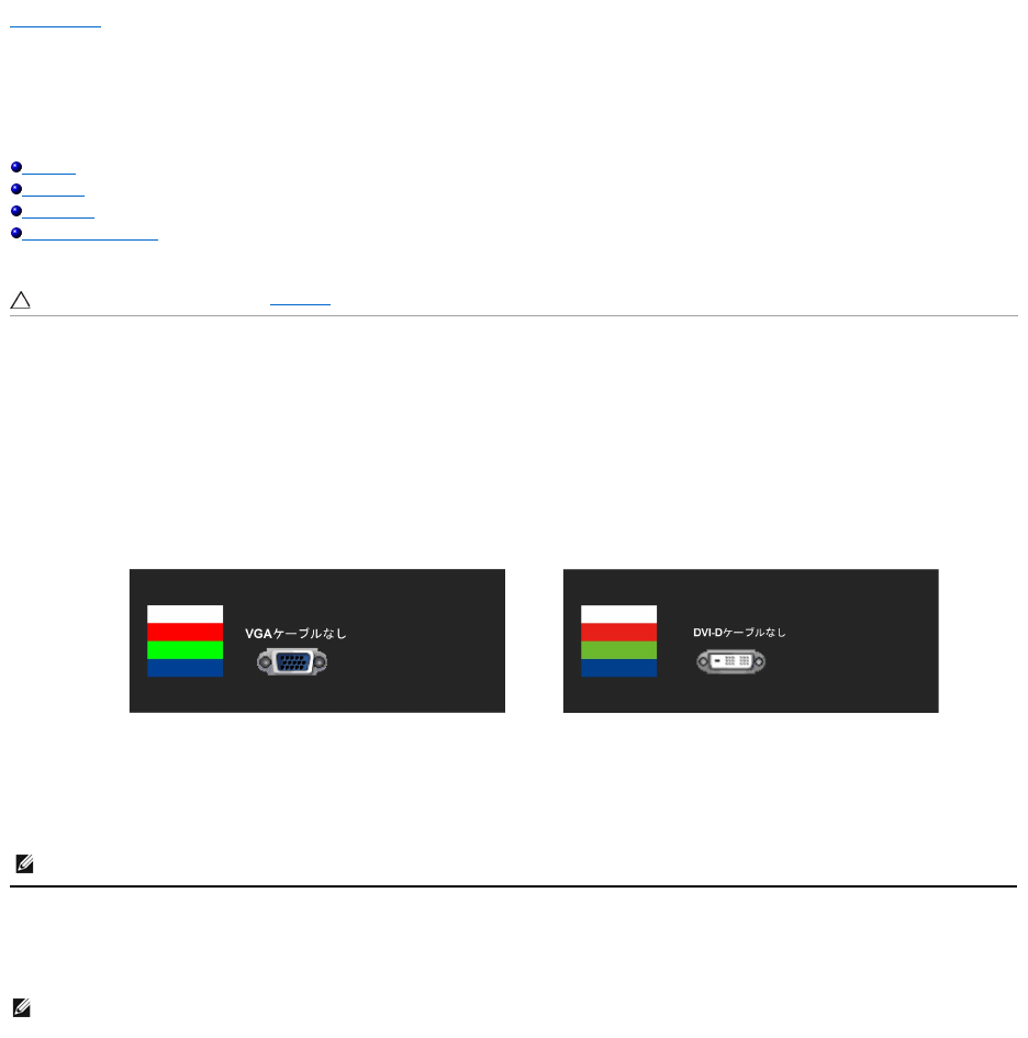 注記: モニタが正常に作動しない場合、特に異常な音や臭いが発生する場合は、ただちに電源プラグを抜いて、 デル テクニカルサポート に連絡してください。