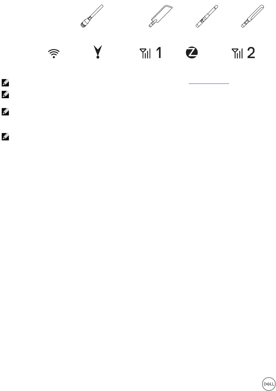 Le speciche delle antenne autorizzate da Dell sono le seguenti: