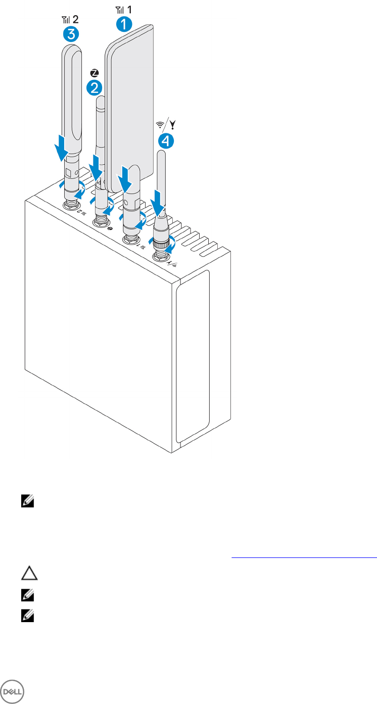 N.B.: Eventuali modiche al dispositivo o l'utilizzo non autorizzato di antenne non espressamente approvate da Dell sono
