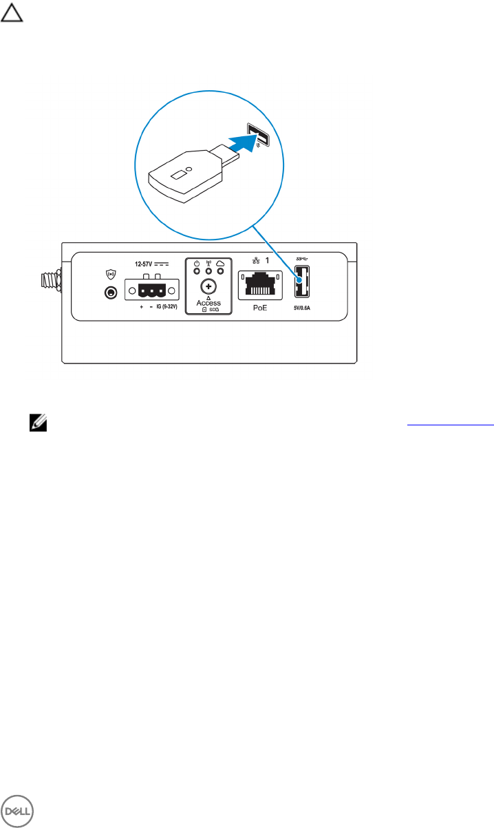 NOTE: Modications to the device or use of unauthorized antennas not expressly approved by Dell is the sole