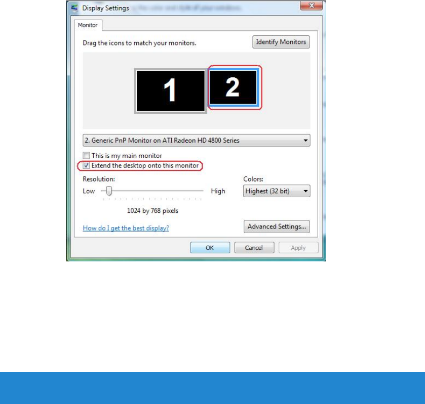 no encuentra el monitor adicional en la lista, haga clic en Detectar.