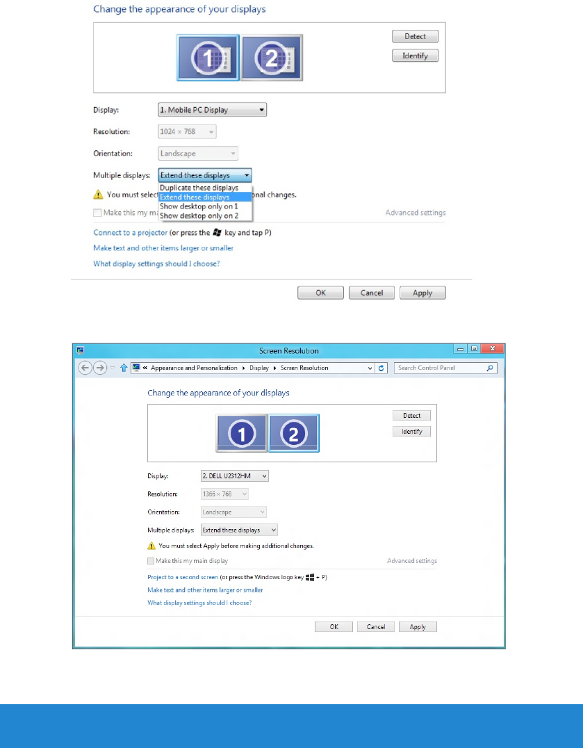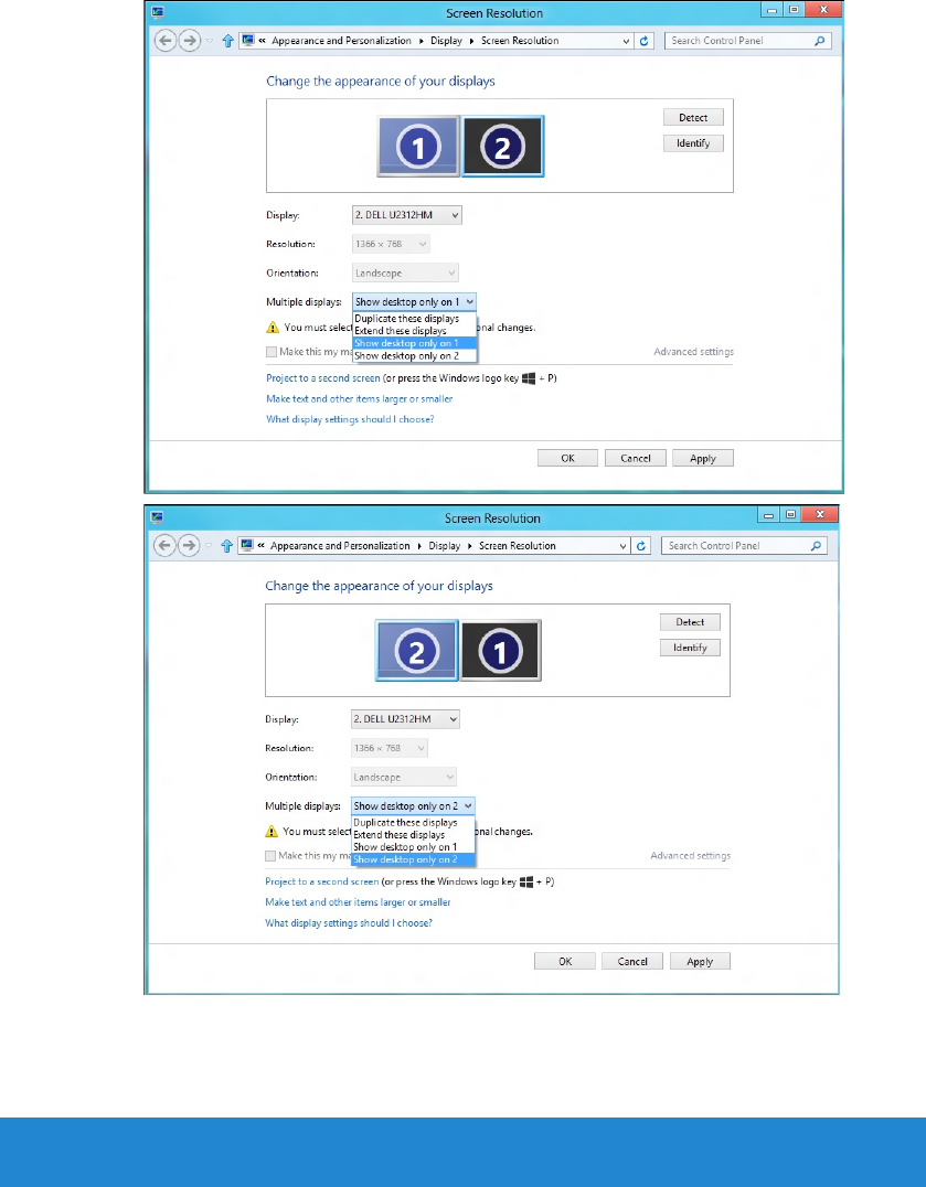 • Duplicar estas pantallas: Duplica la misma pantalla en dos monitores