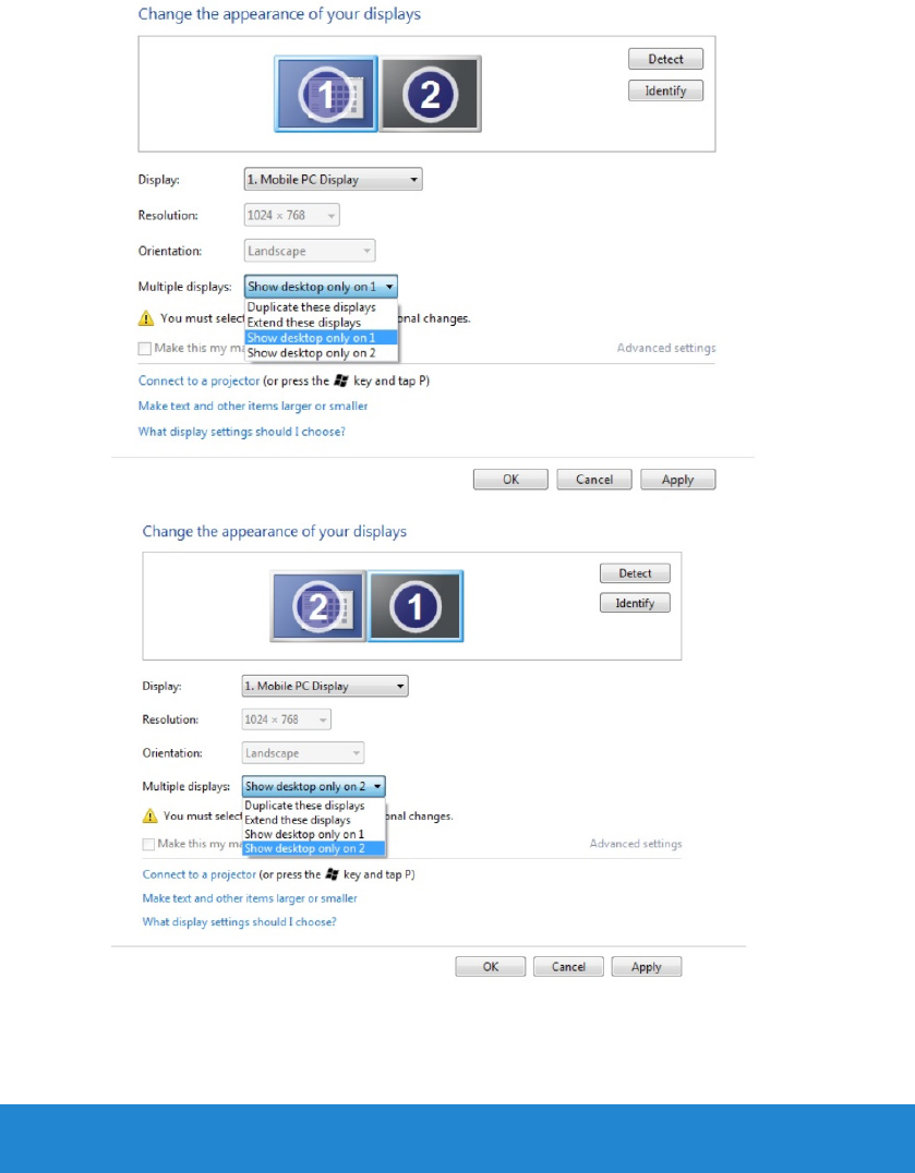 • Mostrar escritorio únicamente en: Muestra el estado de un monitor en