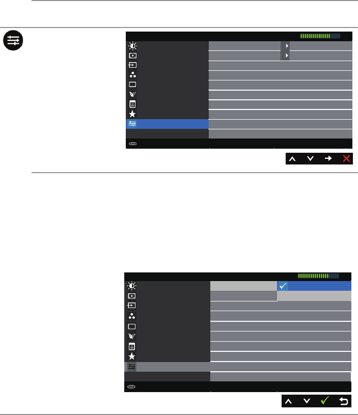 OSD は、通常動作モードでのみ機能します。アクティブオフモードで任意のボタンを
