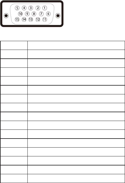 ピン番号 接続された信号ケーブルの 15 ピン側