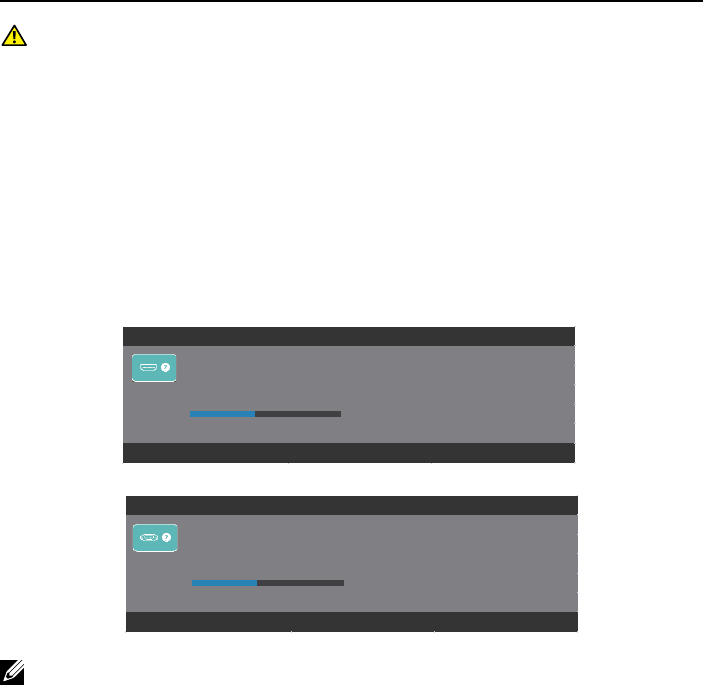 ∞檢查訊號來源。移動滑鼠或按鍵盤上任一按鍵,以確定電腦未處於待機