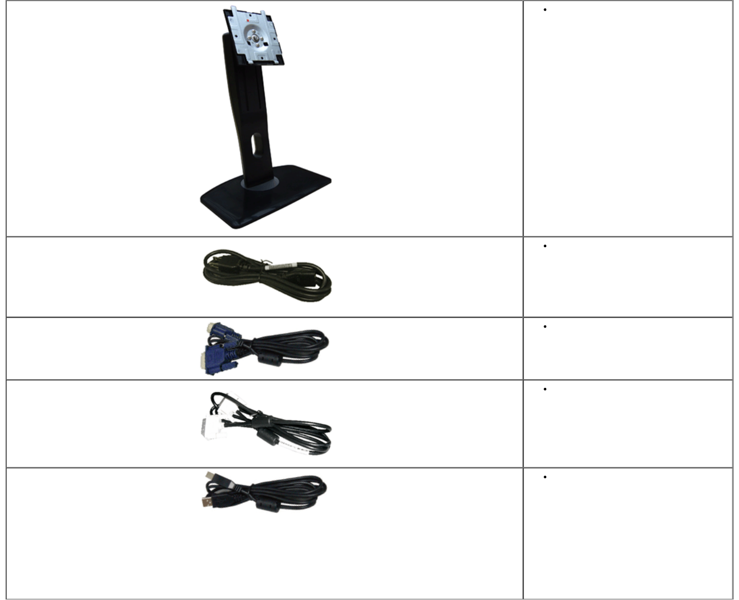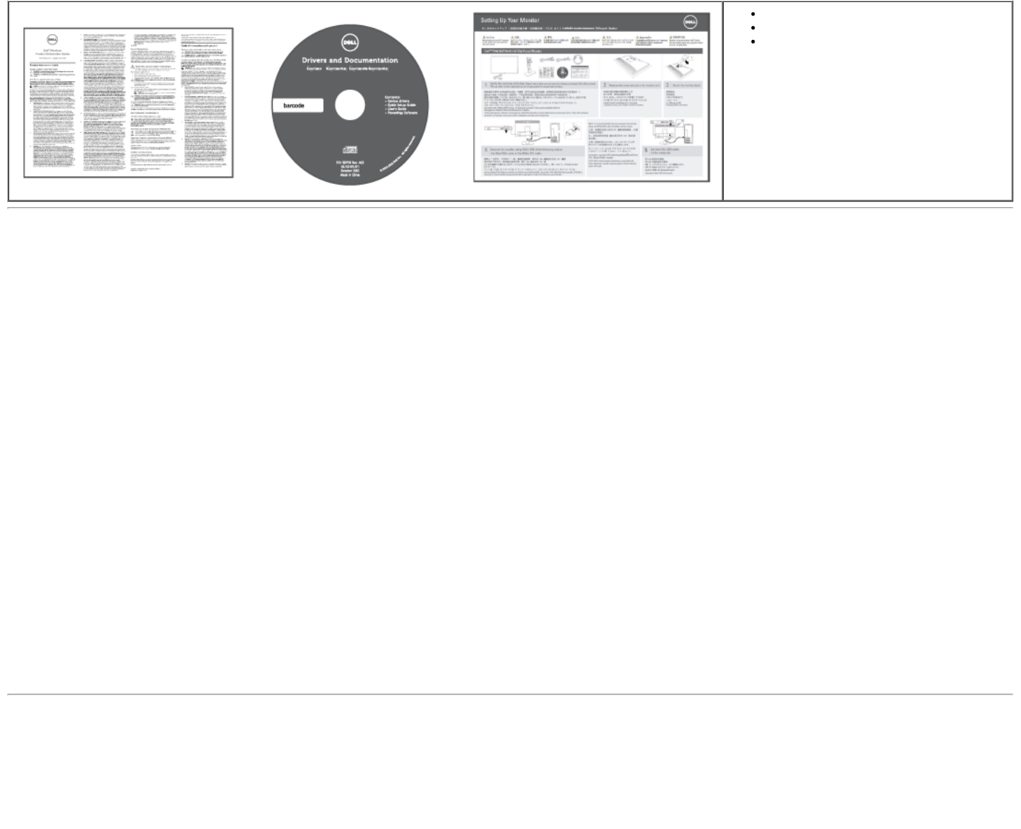 モニターには、以下に示すコンポーネント:がすべて付属しています。コンポーネント:がすべて揃っているかを確認し、コンポーネントが足りないときはDellにご連絡ください。