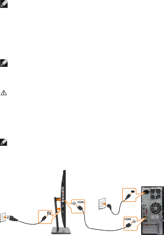 • 为使显示器保持最佳图像质量,请使用动态变化的屏幕保护程序,并在不使用显示器时